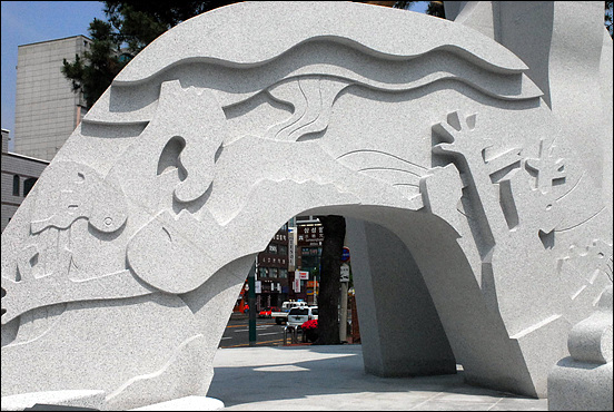 ▲ 철거를 주장하는 4.3 부조물'. 오히려 '4.3저항정신'이 희화적으로 표현되는 등 제대로 표현하지 못했다는 지적을 받은 작품이다.