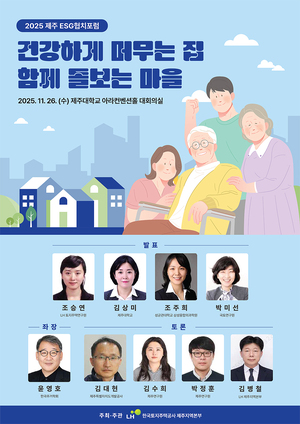 초고령사회의 핵심 과제인 주거와 돌봄의 통합 방안을 모색하기 위한 자리가 마련된다.한국토지주택공사(LH) 제주지역본부는 26일 제주대학교 아라컨벤션홀에서 ‘건강하게 머무는 집, 함께 돌보는 마을’을 주제로 2025 제2차 ESG 협치 포럼을 연다.이번 포럼에서는 급격한 고령화 속에서 공공주택이 단순한 거주 공간을 넘어 스마트 헬스케어와 지역사회 통합 돌봄을 구현하는 플랫폼으로 기능하는 방안을 논의하게 된다.에이징 인 플레이스(AIP)부터 AI 활용한 디지털 돌봄혁신까지 총 네 가지 주제에 대한 심층 연구가 발표될 예정이다. 이후 관