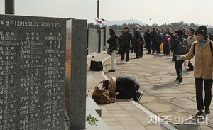 부산에서 태어나 몸이 편찮은 아버지가 별다른 생계활동조차 하지 못하는 모습을 보고 자란 중년 여성이 아버지의 제주4.3 피해 사실에 통곡했다. 11일 제주지방법원 제4형사부는 ‘제주4.3사건 직권재심 합동수행단(단장 강종헌, 합동수행단)’이 청구한 제58차 군사재판 직권재심 대상자 30명 전원에게 무죄를 선고했다. 30명 중 12명은 1948년 1차 군법회의에 회부돼 내란죄에 휘말렸고, 나머지 18명은 1949년 2차 군법회에서 국방경비법 위반 혐의를 받은 받은 4.3피해자들이다. 이날 명예가 회복된 고(故) 임영호는 1949년 2