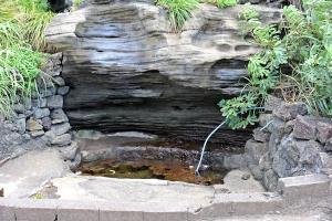 길을 따라서 물결이 햇살에 반짝이는 아름다운 바다와 ‘백년초’ 손바닥 선인장에 흠뻑 빠질 수 있는 마을이 있다. 이 마을은 큰 너럭바위가 포구에 있어 ‘한개(대포), 한독잇개(대독포)’라고 했던 금등리다. 예전 한림면에 속해 있던 이 곳은 도덕적인 나라였던 옛 중국의 등나라 등(騰)자를 따서 ‘금등리’다. 형세가 마치 지네 등과 같이 남북으로 길게 뻗어 있고, 가옥은 지네의 발과 같이 비교적 저지대에 산재해 있어서 ‘지네골’이라고 한다.이 마을 바닷가에도 손도물(손드물, 손두물, 손딧물)과 비래수(비릿물)라 부르는 산물이 솟고 있어