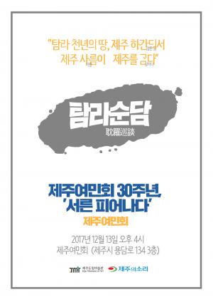 탐라순담[耽羅巡談] 마흔두 번째 순서는 올해로 30주년을 맞이한 제주여민회의 이야기를 다룬다. 13일 오후 4시 제주여민회 사무실(제주시 용담로 134 3층)에서 ‘제주여민회 30주년-서른 피어나다’를 주제로 탐라순담을 진행한다. 제주여민회는 1987년 창립 이후 여성에 대한 가부장적 차별과 억압에 반대하며 성차별 제도 개선을 위한 운동을 지속적으로 벌여왔다. 지난 30년 동안 진보적 여성운동의 시작(1987~1992) 대중적 여성운동으로서의 전환과 집중(1993~1996) 지역여성운동 조직으로 뿌리내리기(1997~2005) ...