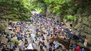 제주특별자치도 서귀포시 안덕면 감산리(柑山里). 인구 800명 남짓의 작은 농촌 마을이다. 초등학교도, 공공기관도 없고, 주민 대부분이 귤 농사로 생계를 이어간다. 도지사나 국회의원 선거철이 아니면 외지인이 좀처럼 찾지 않는 조용한 마을이다. 제주도민들에게 감산리를 떠올리게 하는 건 천연기념물 제377호, 안덕계곡 덕분일 것이다.계곡이 음악 무대가 된 오후지난 10월 18일 오후, 이 한적한 마을에 수백 대의 차량이 몰려들었다. 주차장을 찾느라 난리였고, 계곡 주변은 사람들로 북적였다. ‘안덕계곡예술제’를 보기 위해 600여 명의