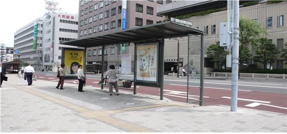 # 일본의 인도와 정류 시설은 한국과 달리 개방적이며 넓다. 교통약자를 포함해 누구나 안전하고 편하게 교행 할 수 있도록 하고 있다. 정류시설은 우리와 달리 가림막이 없으며 휠체어장애인이나 유모차를 끈 여성, 보행 의지물에 의지한 노인들을 위해 넓은 공간을 배려하고 있다.