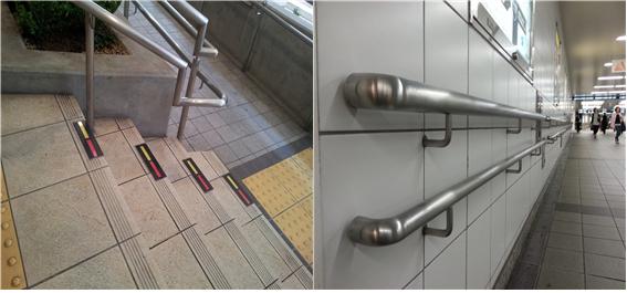 # 일본 유니버설 디자인의 세심함을 새삼스럽게 느낀 것은 계단 가장자리에 색약·색맹인을 위한 블록설치와 이중 핸드레일 설치에서였다.