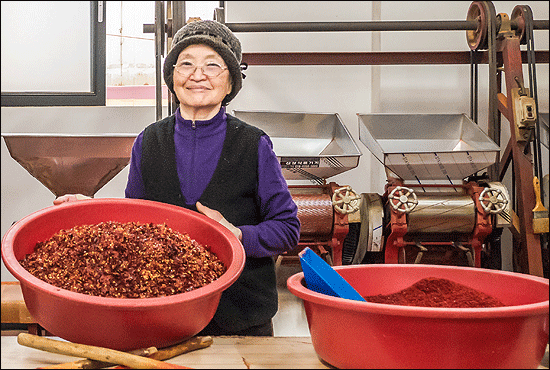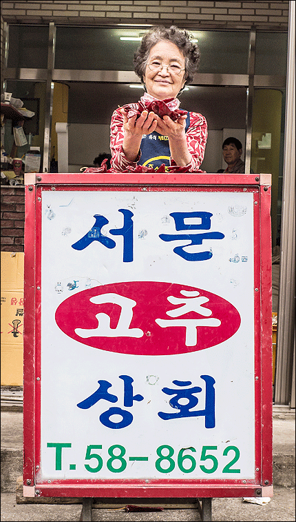 “글쎄, 어제는 누가 고추를 갈러 왔는데 아무리 봐도 내가 봤을 땐 그것으로는 도저히 고추장을 담을 수 없는 고추인 거야. 그래서 손님한테 이거 다시 가서 바꿔오든지 버리든지 하라고 그랬거든. 양심에 찔려서 도저히 나는 못 갈아주니까. 분명 담가도 맛이 없을 것이니까. 나는 손님한테도 항상 솔직하게 그렇게 말해. 다들 고추에 관해 잘 몰라서 그러니 조금이라도 많이 아는 내가 가르쳐줘야 할 거 아니야? 근데, 그러고 나면 항상 고추 판 사람이 열 받아서 나한테 달려올까 걱정도 돼(웃음). 사실 그 고추를 판 사람은 중간에서 판 죄밖에 없거든. 그래도 말이지, 어떻게 그런 고추를 팔 수 있느냐 이거지 나는. 사람들이 왜 그렇게 대충 팔고 대충 먹으려는지, 도무지 이해가 가질 않아. 고추가 한국 사람에게 얼마나 중요한 음식 재료인데, 그런 먹거리를 대충하면 안 되잖아?”