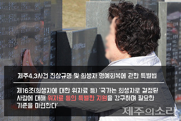 법안이 국회를 통과하면 내년 3월부터 5년간 단계적으로 보상지급이 이뤄진다. 지급 대상은 국가에서 4·3희생자로 결정한 인정자다. 정부는 이에 대비해 1810억원의 새해 예산안을 편성했다.