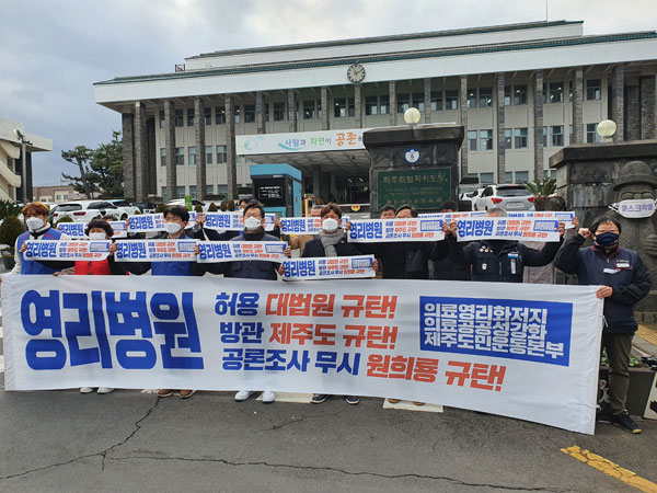 특히 운동본부는 "지난 2015년 보건복지부 승인 당시 녹지그룹에서 제출한 사업계획서에 '외국인 의료관광객 대상 의료서비스 제공'이라는 사업 방향이 명시돼 있다며 소송전에 자신감을 표명했하지만 결과는 처참할 뿐이다"라며 "영리병원 문제를 재판이 아닌 제주도-JDC-중국녹지그룹 3자 대화를 통해 원만하게 문제를 해결해야 한다고 수없이 이야기했음에도 귓등으로도 듣지 않고 방관한 결과"라며 제주도정의 책임을 물었다.