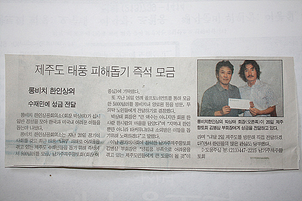 필자는 LA에 사는 교민들을 취재하면서, 그들이 어려운 생활에도 불구하고 고향 제주를 위하여 모금하는 것을 직접 눈으로 보았다. 모두가 여유 있어서 그들이 고향을 위해 도와주는게 아니라는 말이다. 이건 비단 LA지역뿐만이 아니라고 본다. 어떤 은퇴한 분은 아내와 살면서 미국 연방정부로 부터 받은 한달 소셜 시큐리티 1,400불 중 집세(1000천불)로 내고 남은 400불의 생활비 중 1/4을 떼 내서 성금을 냈다. 월세 850불에 불과한 허름한 아파트에 살고 있는 어르신이 성금으로 300불을 내는 것도 보았다. 아마 그 정도면 한달 생활비나 다름없을 거다.