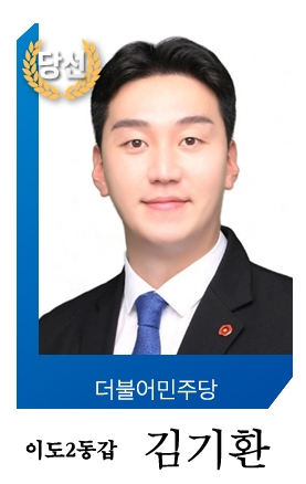 제주도의원 선거 제주시 이도2동(갑) 선거구에서는 30대 정치 신예인 더불어민주당 김기환(31) 후보가 국민의힘 강철호 후보를 누르고 당선됐다.