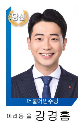 [기사보강 2일 오후 1시30분] 제주도의원 선거 제주시 아라동(을) 선거구에서는 더불어민주당 강경흠(28) 후보가 당선됐다. 제주도의회 역대 최연소 의원이다.