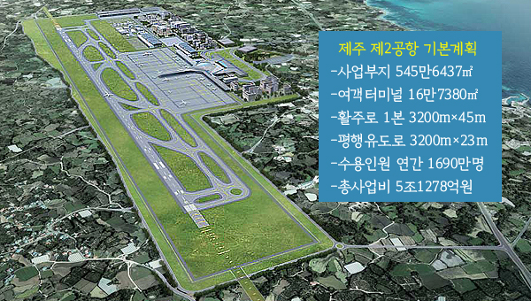 정부는 제2공항이 건설되면 연간 이용객이 3000만명에 달하는 기존 제주공항의 혼잡 및 안전 문제가 단번에 해소될 수 있을 것으로 내다봤다.
