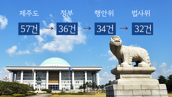 13일 정치권에 따르면 ‘제주특별자치도 설치 및 국제자유도시 조성을 위한 특별법 일부개정법률안’에 대해 국회 법제사법위원회가 문제를 제기해 2월 임시회 처리가 어려워졌다.