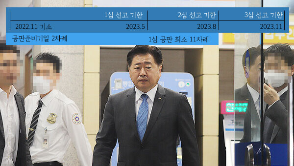 재판부는 법정기한까지 총 4차례 공판을 진행했다. 증인신문을 소화하기 위해 8월까지 7차례에 더 공판기일을 열기로 했다. 공판준비기일을 더하면 재판 일정만 최소 13차례다.