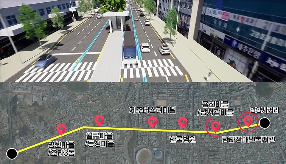 제주도는 서광로 광양사거리에서 도령마루(옛 해태동산) 3.1km 구간에 17개 정류장을 철거하기로 했다. 대신 도로 중앙에 6개의 섬식정류장이 들어선다.