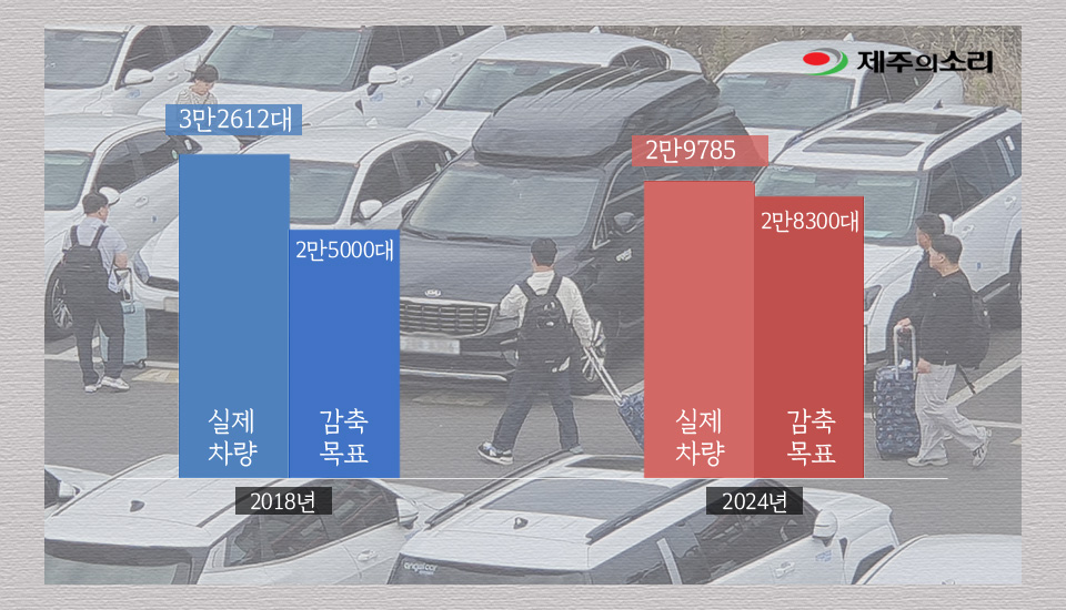 하지만 제주도는 신규 등록 차단과 일부 자율감차를 통해 렌터카를 3만대 밑으로 떨어뜨리는 소기의 성과를 올렸다. 현재 등록된 도내 렌터카는 2만9785대다.