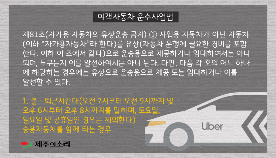 다만 ‘출퇴근 때 승용차를 함께 타는 경우는 제외한다’는 예외조항이 있었다. 하지만 등하교나 출퇴근이 아닌 시간에도 영업이 이뤄지면서 논쟁이 일었다.