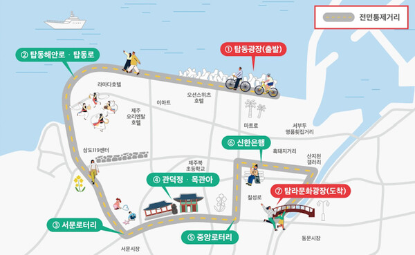 '길 위에서 만나는 제주, 거리에서 시작되는 새로운 변화'를 주제로 내건 이날 행사는 탑동광장을 출발해 서문로터리, 관덕정, 중앙로터리, 신한은행, 탐라문화광장을 순회하는 코스로 진행된다.
