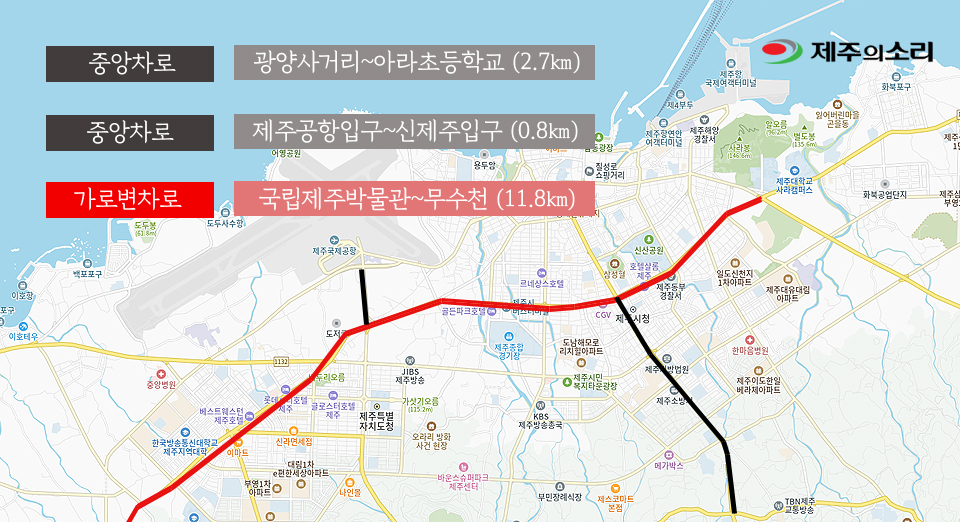 섬식정류장을 갖춘 버스전용차로는 향후 3단계에 걸쳐 조성된다. 1단계는 국립제주박물관에서 도로교통공단으로 이어지는 10.6km 구간이다. 318억원을 투입해 현재 공사가 한창이다.
