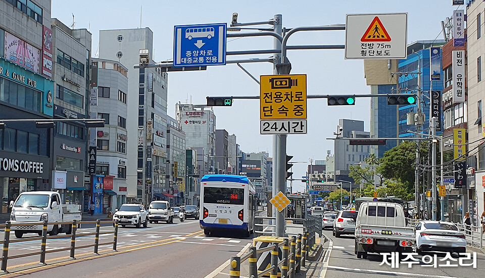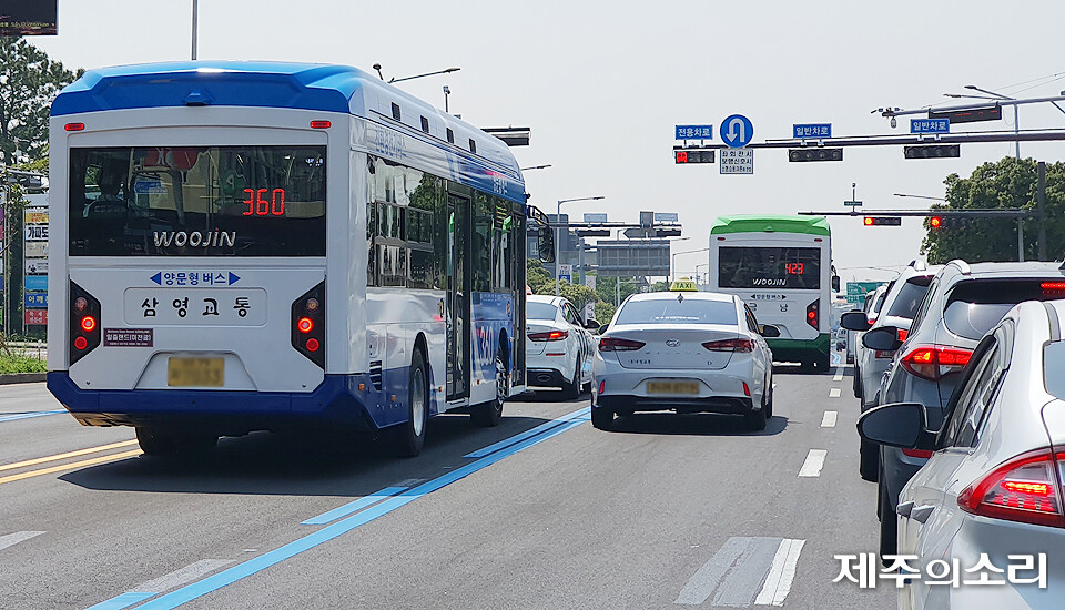 제주도는 우선차로 운영 근거를 명확히 하기 위해 지난해 ‘제주특별자치도 전용차로 운영 조례안’을 제정했다. 이에 기존 우선차로 명칭을 ‘버스전용차로’로 명문화했다.