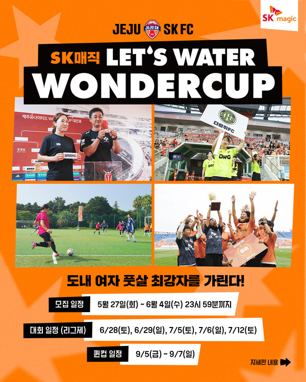 제주SK FC는 여자 풋살대회 ‘SK매직 LET’S WATER WONDER CUB‘ 참가팀을 모집한다고 28일 밝혔다.