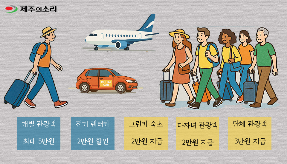 제주도는 9월에 개별여행객을 대상으로 추첨을 통해 최대 5만원의 지원금도 지급하기로 했다. 제주 디지털관광증 나우다(NOWDA)를 통한 입장료 할인도 계획하고 있다.
