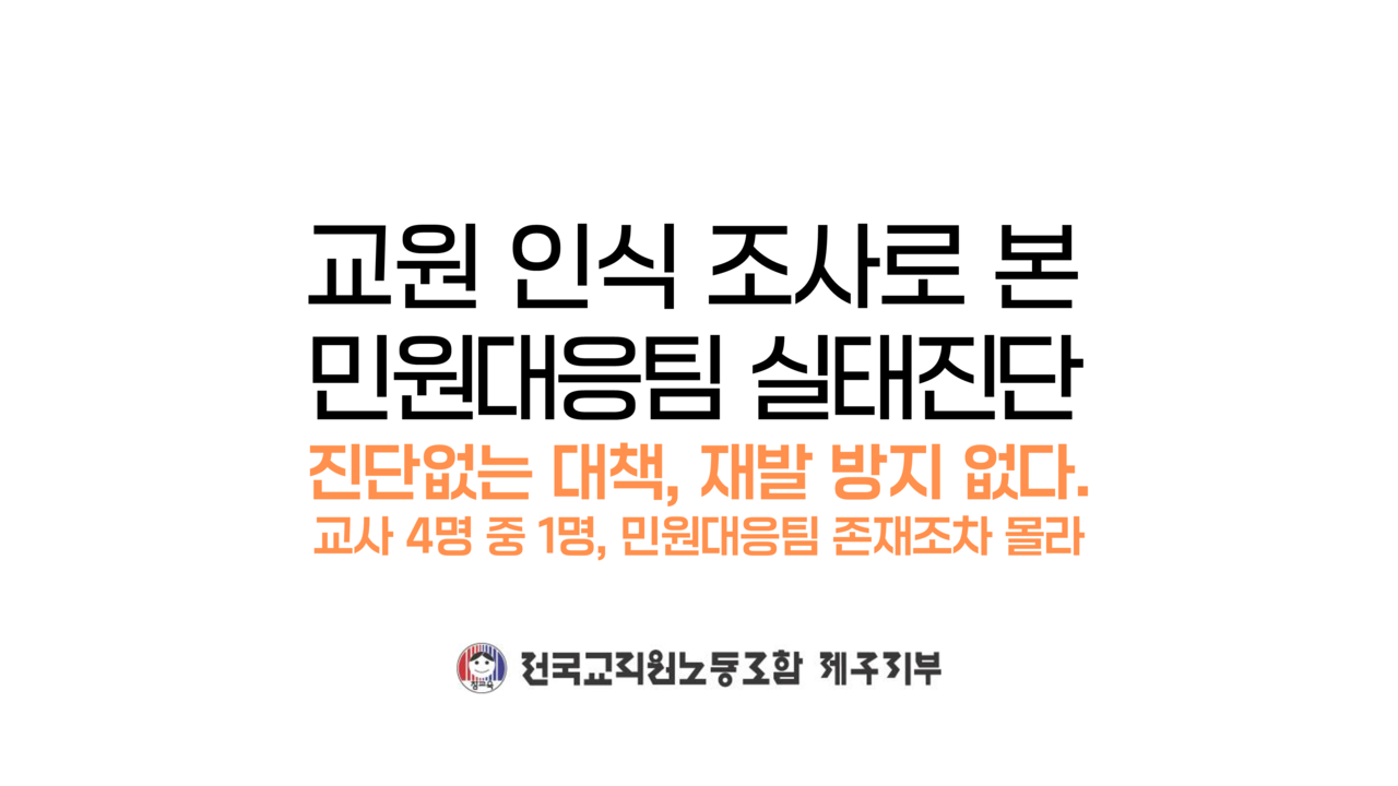 관련해 전교조 제주는 “서이초 교사 사망 사건 이후 민원 대응 매뉴얼이 마련됐고, 지난 5월 현승준 교사 사망 사건 직후 관련 설문조사가 진행됐음에도 이런 결과가 나왔다”고 말했다.