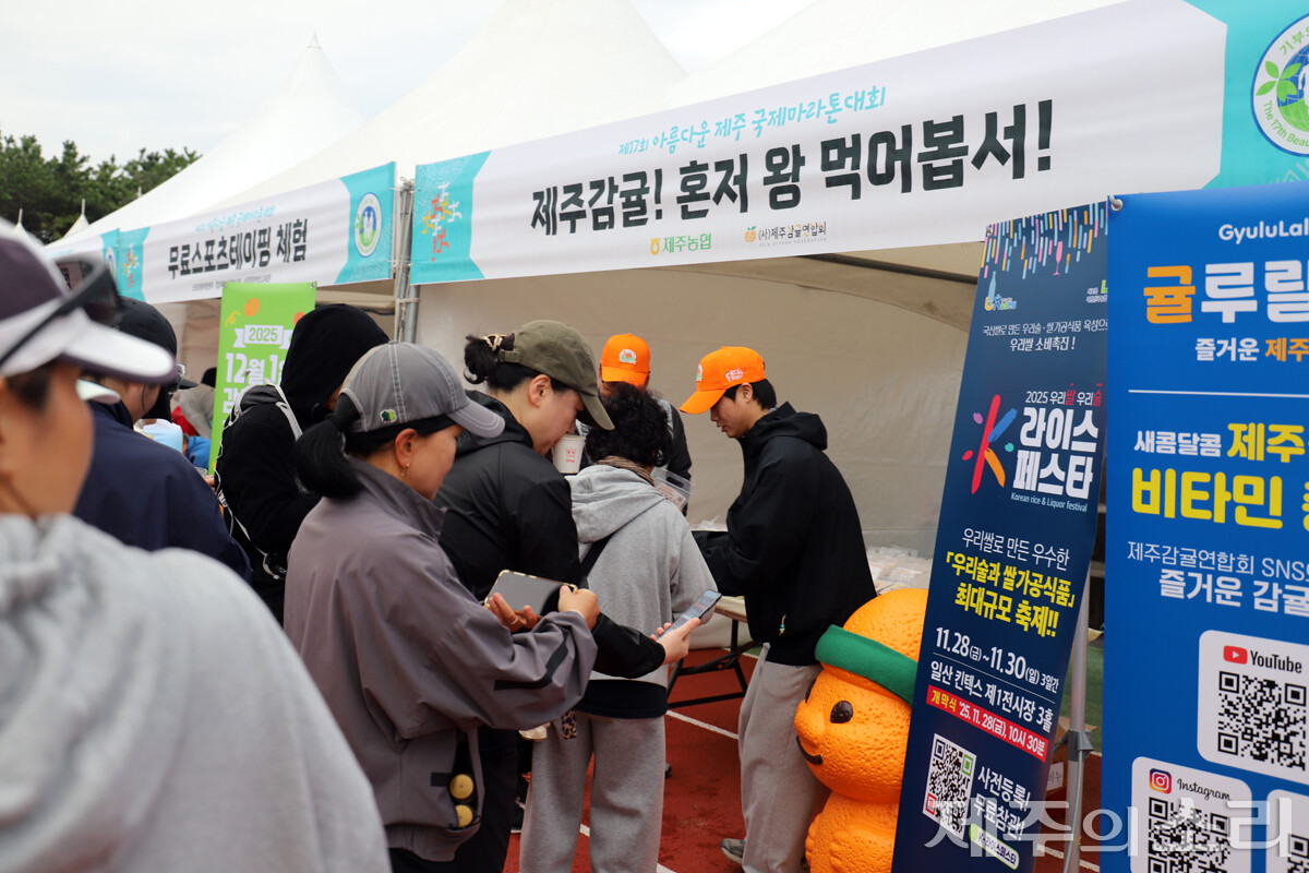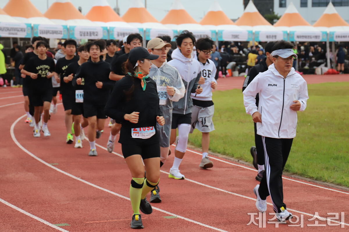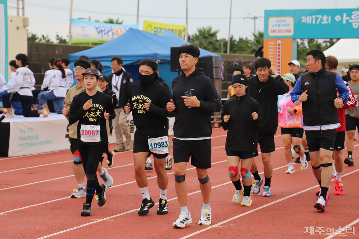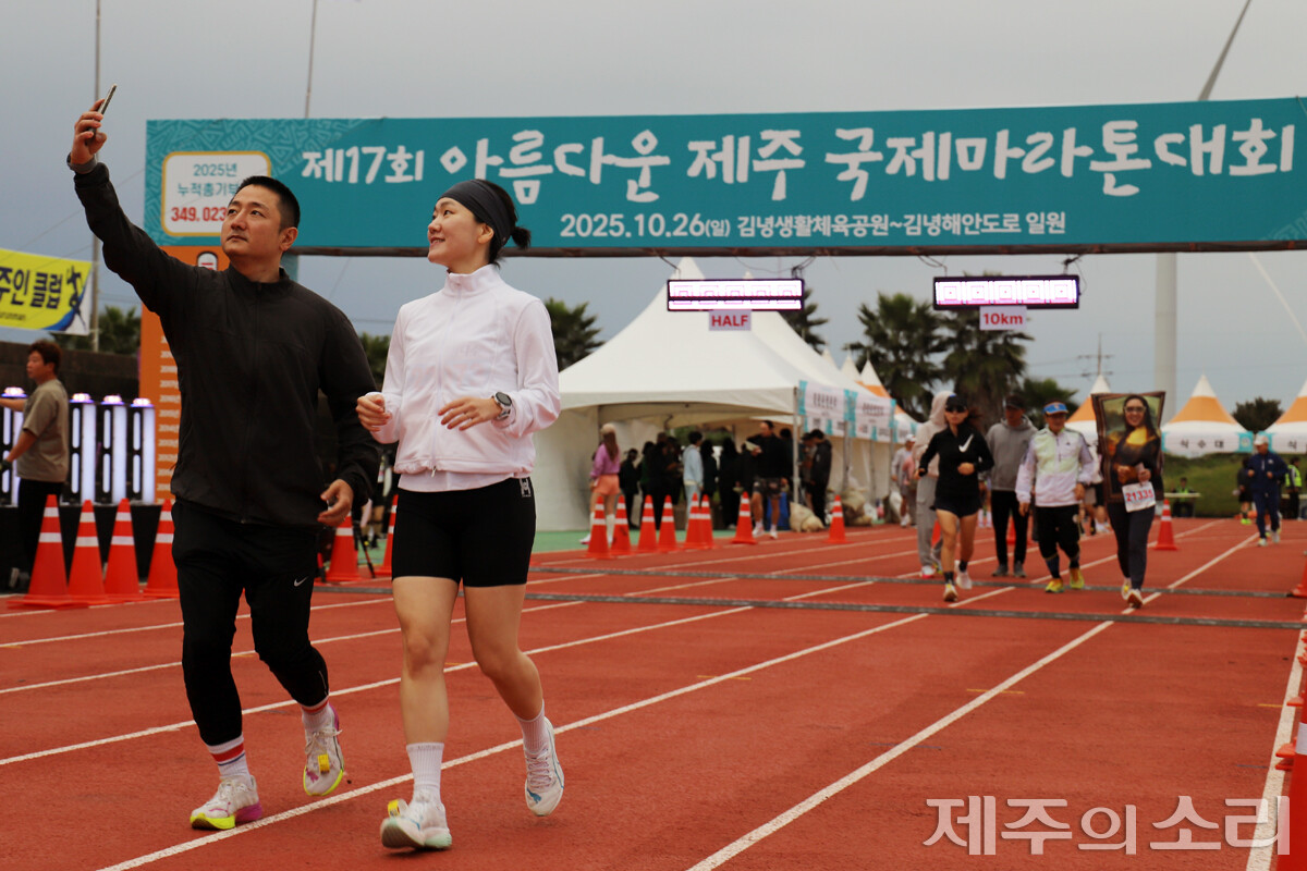 제주의소리와 제주특별자치도육상연맹이 주최·주관하고 제주특별자치도가 후원하는 '제17회 아름다운제주국제마라톤대회'가 26일 제주시 구좌생활체육공원운동장에서 막을 올렸다. 올해 참가자는 총 5500명으로, 당초 정원 5000명을 훌쩍 넘어선 역대 최대 규모다.