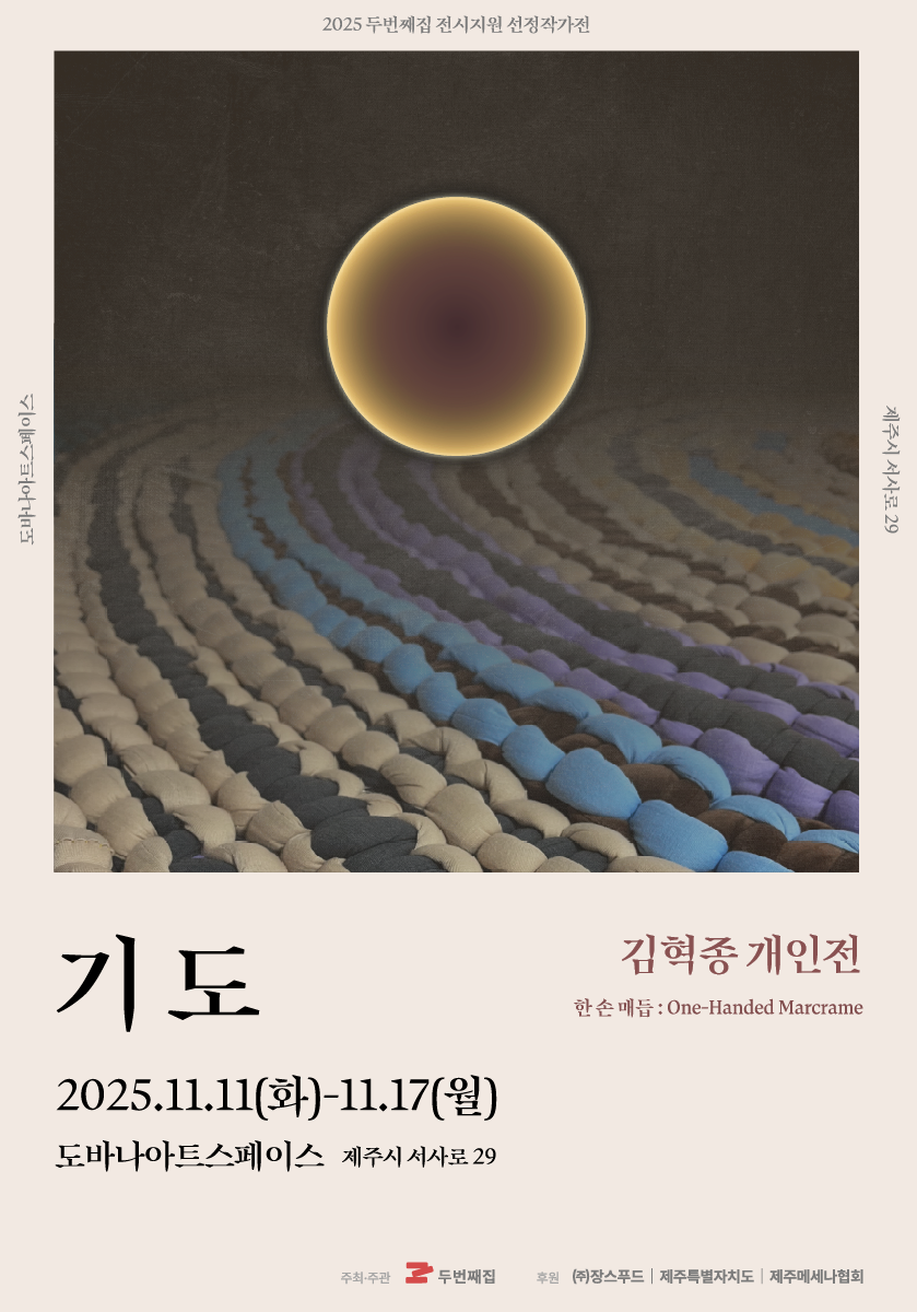 섬유공예 작가 김혁종은 오는 17일까지 제주시 도바나 아트스페이스(서사로 29)에서 첫 개인전 ‘기도’를 연다. 신소연이 기획하고 커뮤니티아트랩 KOJI가 주최한다.