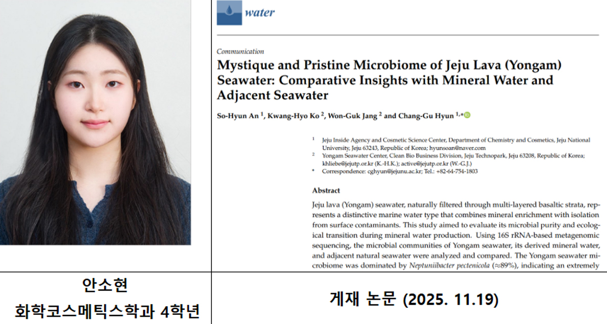 이번 연구의 제1저자는 제주대학교 화학·코스메틱스학과 4학년 안소현 학생으로, 학부생이 직접 연구를 주도해 국제학술지에 제1저자로 게재한 사례는 매우 이례적이다.