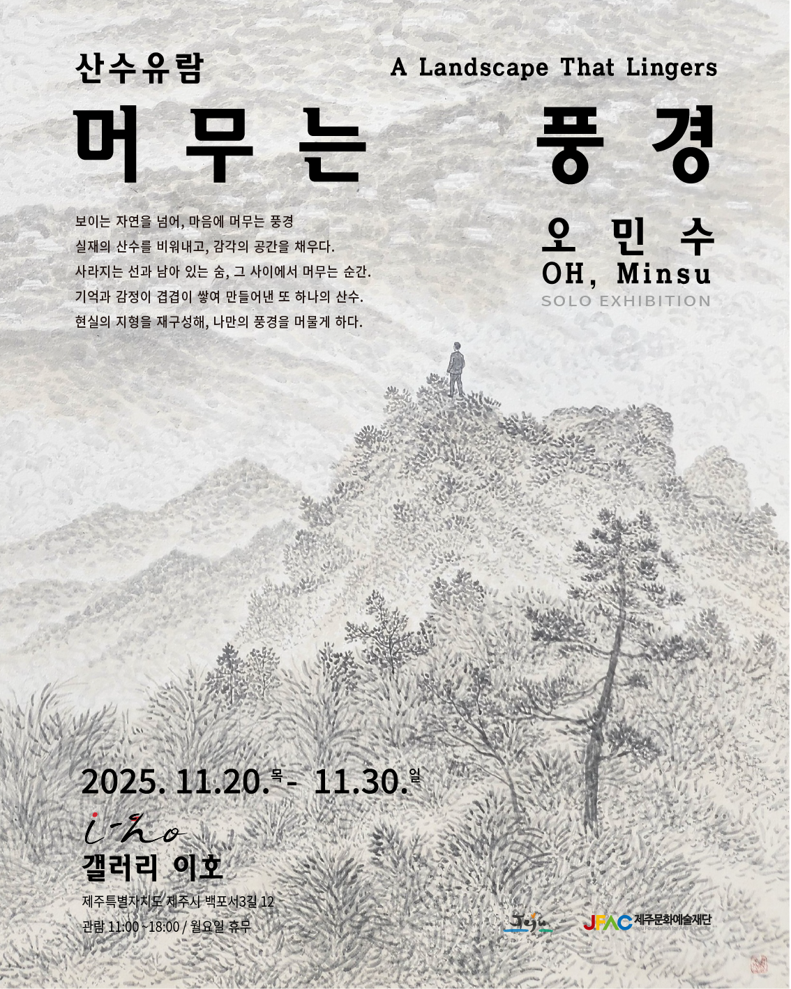 오민수는 오는 30일까지 제주시 갤러리 이호(백포서길 12)에서 보이는 자연을 넘어, 마음에 머무는 또 하나의 산수 ‘산유수람: 머무는 풍경’ 개인전을 개최한다.