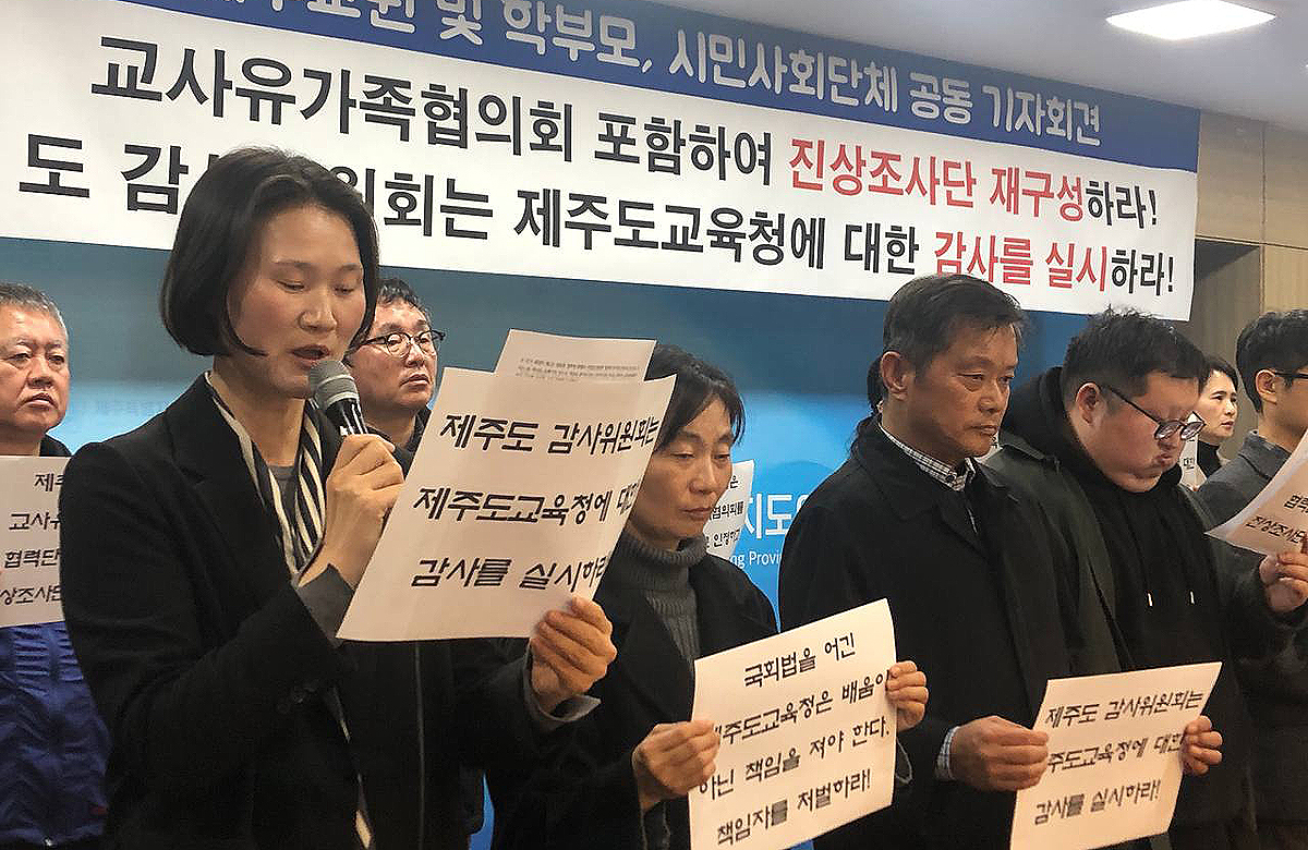 이들은 “진상조사는 교육청 중심으로 운영돼 고인의 명예와 유가족의 상처는 뒷전으로 밀렸다. 유가족의 신뢰를 잃은 진상조사단은 더 이상 존재의 이유가 없다. 제주도 감사위원회는 즉각 감사를 실시해야 한다”고 요구했다.
