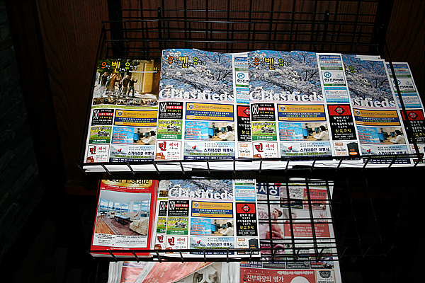약속 시간은 4월 26일 저녁 6시. 조금 일찍 랍슨 스트리트에 도착하여 거리 분위기를 살펴보는데, 느낌이 서울 외곽 학원가에 온 듯한 느낌이다. 한국인 유학생(어학)들로 넘쳐나고 있었기 때문이다. 식당 입구에도 유학생활과 관련된 잡지가 눈에 띤다. 캐나다는 6개월 노비자 체류가 가능하기 때문에 이 곳에 한국학생들이 몰려들고 있는 것이란다. 어쩌면 이 거리 상권도 한국인들이 먹여 살려주고 있는 것은 아닐까?.