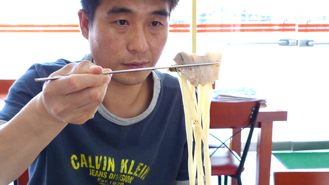 “그냥 나는 팔팔 끓는 물에 국수가락 넣고 거품 올라오면 조금 불을 줄인 후 건져서 바로 찬물에 재빨리 씻으면 끝이지. 거품 올라오면 찬 물 한 컵 넣고 하지 않고 그냥 삶아서 바로 찬물에 씻으면 쫄깃해지지.”