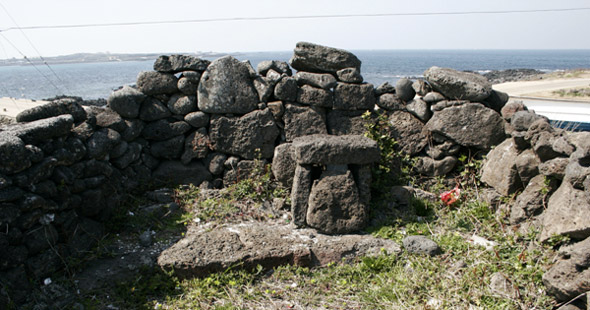 도리성창을 지나 똔비양에 접어들면 바로 오른쪽 높은 동산에 있다. 이 당은 비양도 사람만 다니는 해신당이다.